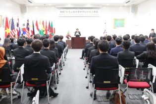 式では、中村和彦学長が「On this auspicious day, as you embark on a new journey of learning, I sincerely wish that your future will be filled with hopes and achievements」と式辞を述べました。