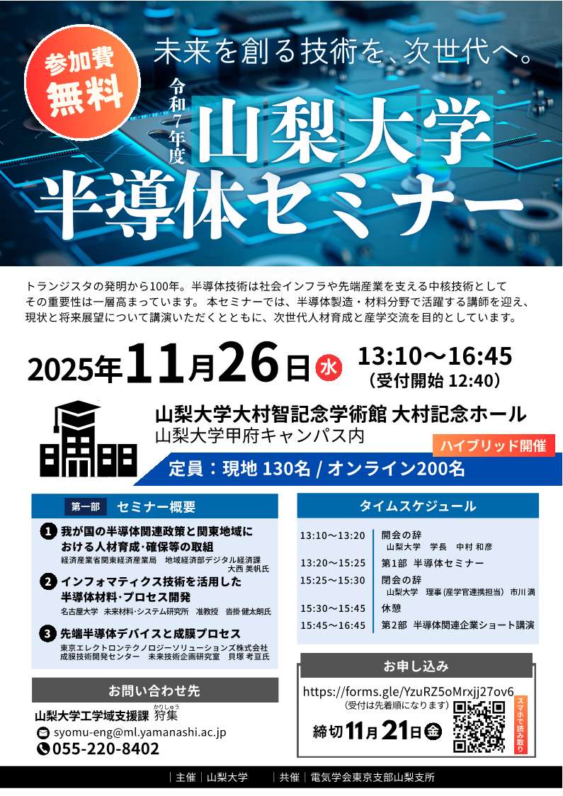 令和7年度山梨大学半導体セミナー開催のご案内