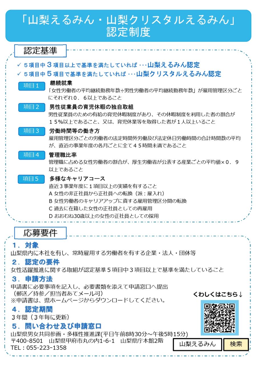 国の制度である「えるぼし」や「くるみん」認定取得の足がかりとなるよう、山梨県が設け