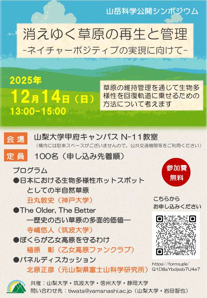 山岳科学公開シンポジウム「消えゆく草原の再生と管理-ネイチャーポジティブの実現に向けて―」開催のお知らせ
