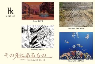 本展では、井坂教授と学生3 名が出品し、絵画、インスタレーション、マンガ、CGなど多岐にわたる表現をご覧いただけます。