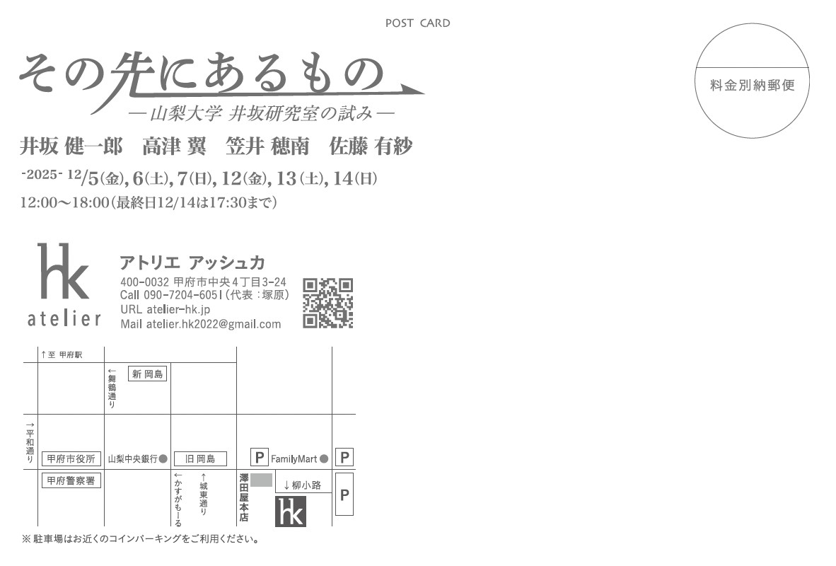 井坂健一郎教育学部芸術身体教育講座教授と井坂研究室の学生らが日頃の研究成果の発表として美術展「その先にあるもの -山梨大学 井坂研究室の試み-」を開催いたします。