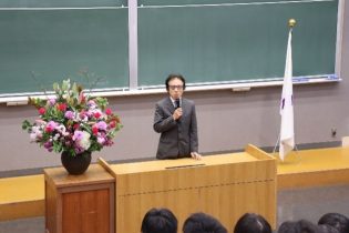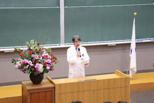 授与式では、小泉修一医学部長が「これからは、患者さんや患者さんの家族のために、という認識を持ち、実習に取り組んでほしい」と、また木内博之医学部附属病院長が「臨床実習では、患者さん、他職種チームとの関わりのなかで、失敗を恐れず学ぶ姿勢を持ち続けてほしい」と学生を激励しました。また、来賓を代表し、植村武彦山梨県福祉保健部長が祝辞を述べました。