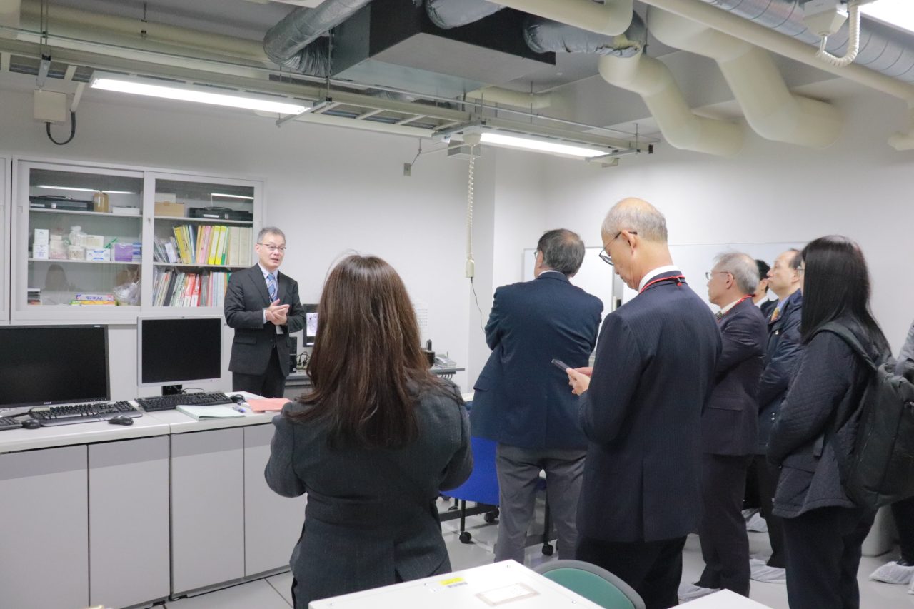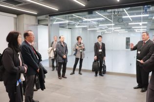 引き続き行われた施設見学では、設備機器導入中の新たな研究教育棟「ゼロエミッションみらいラボ」において今後の活用計画を含めた部屋毎の機能・役割を説明する同時に、水素・燃料電池ナノ材料研究センターでは導入予定の電子顕微鏡や自動実験装置、燃料電池の評価装置等、最先端の研究を支える環境をご覧いただきました。