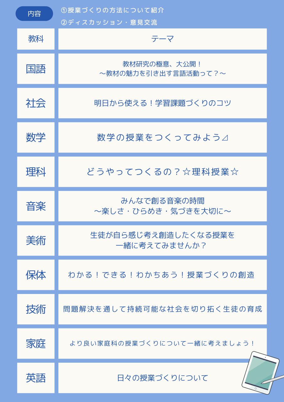 日々の授業の中で悩みを抱える現場の先生や授業づくりに不安を抱える教職を目指す学生の皆さん!授業づくりについて一緒に考えてみませんか?