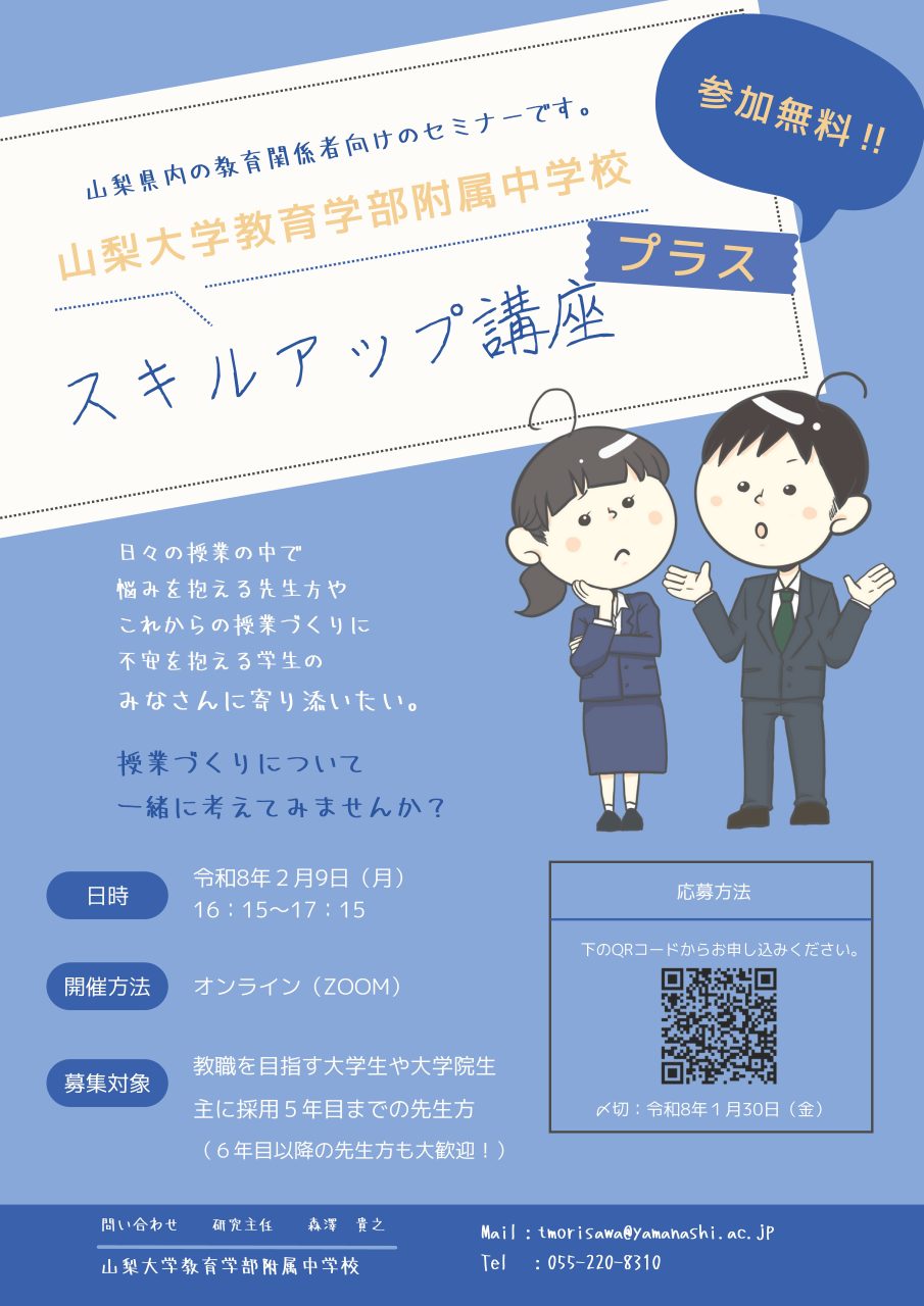 山梨大学教育学部附属中学校「スキルアップ講座プラス」のご案内