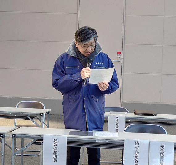 訓練後に行われた閉会式では、中村和彦学長・危機対策本部長が「実際に災害が発生した際にどのような行動を取るべきかを、日頃から確認し、意識を高めておくことが、非常に重要になります。火災は発生を抑制することが可能な災害でもあります。配電や配線コードの点検、可燃物の整理など、発火や防火の対策を徹底し、火災予防について今一度、ご確認いただきたい」と挨拶を述べました。