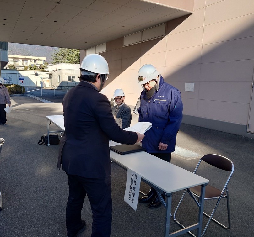 令和7年12月19日(金)、甲府キャンパスにおいて、総合消防訓練(自衛消防訓練)を実施し、本学教職員と学生約30名が参加しました。