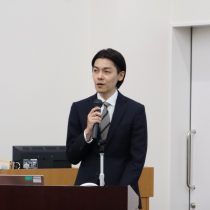 本報告会は、共同実施機関であるシミックホールディングス株式会社、株式会社はくばくとの共催により開催されました。来賓として中村徹平文部科学省科学技術・学術政策局人材政策課人材政策推進室長を招き、学内外から対面およびオンラインで合わせて60名が参加しました。