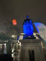 当日は、本事業で製作した水素・燃料電池発電機を活用し、武田信虎公像のライトアップを実施しました。クリーンなエネルギーによるライトアップは、多くの来場者の関心を集めました。また、中村学長ならびに樋口雄一甲府市長も来場し、本事業に対して大きな期待を寄せました。
