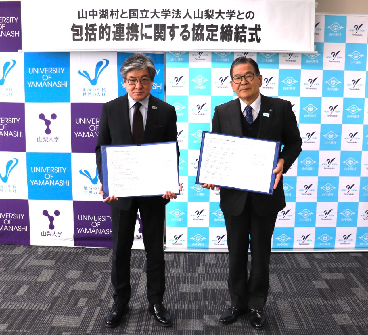 令和8年1月9日(金)、山中湖村役場において、山中湖村との包括的連携協定締結式を挙行しました。