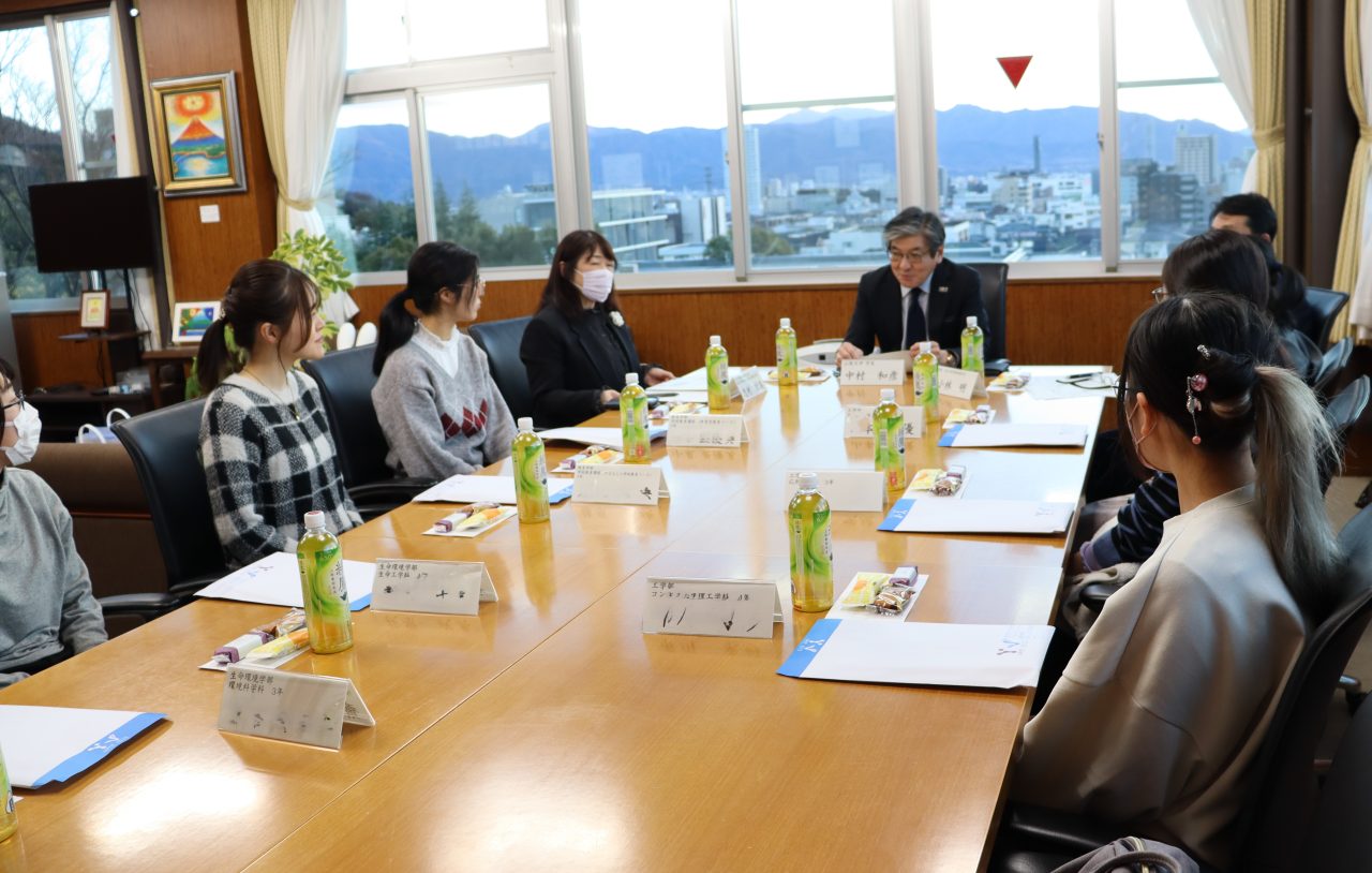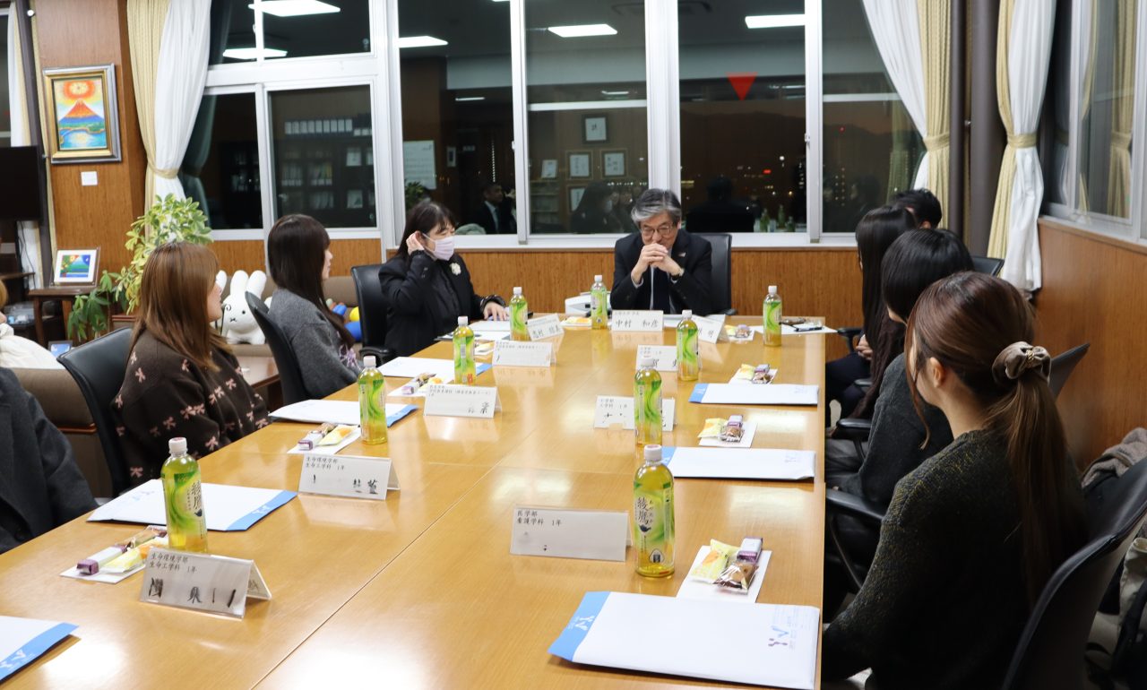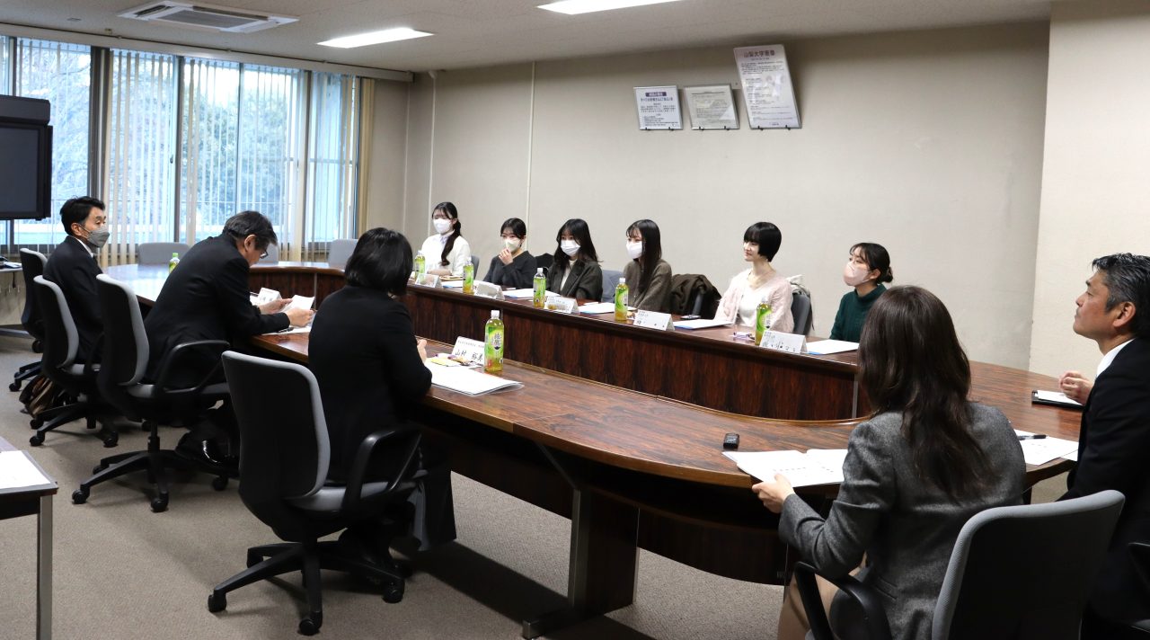 令和8年1月8日(木)、9日(金)の2日間にわたり、甲府キャンパスおよび医学部キャンパスにおいて「令和7年度女子学生と中村学長との懇談会」を開催しました。本懇談会は、中村和彦学長企画のもと3部構成で実施され、各学部から選出された学生20名と学長のほか、小林明理事、志村結美男女共同参画推進室長および山村裕美同室特任助教が参加しました。