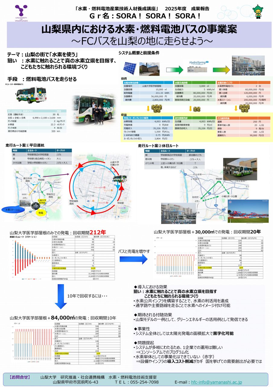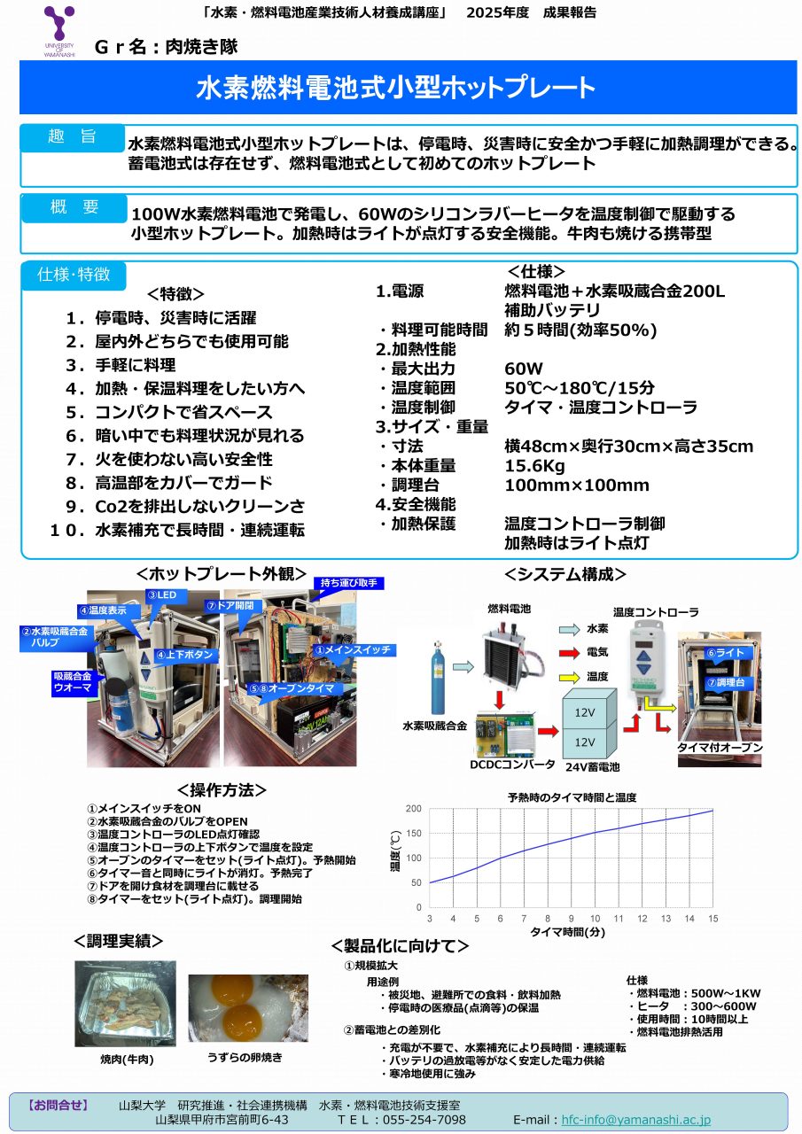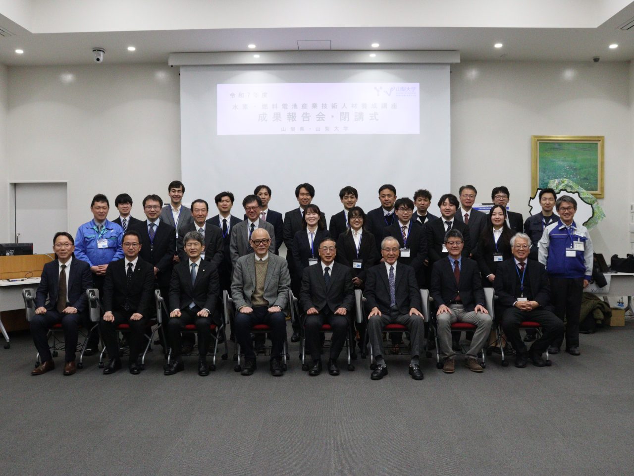本学と山梨県は、水素・燃料電池関連産業分野における県内企業の参入促進を目的として、本学が持つ知見を活用し、水素・燃料電池関連製品の設計、製品開発、性能評価等に必要となる高度で専門的な知識を習得する講座を開講しており、今年度は22名が修了しました。