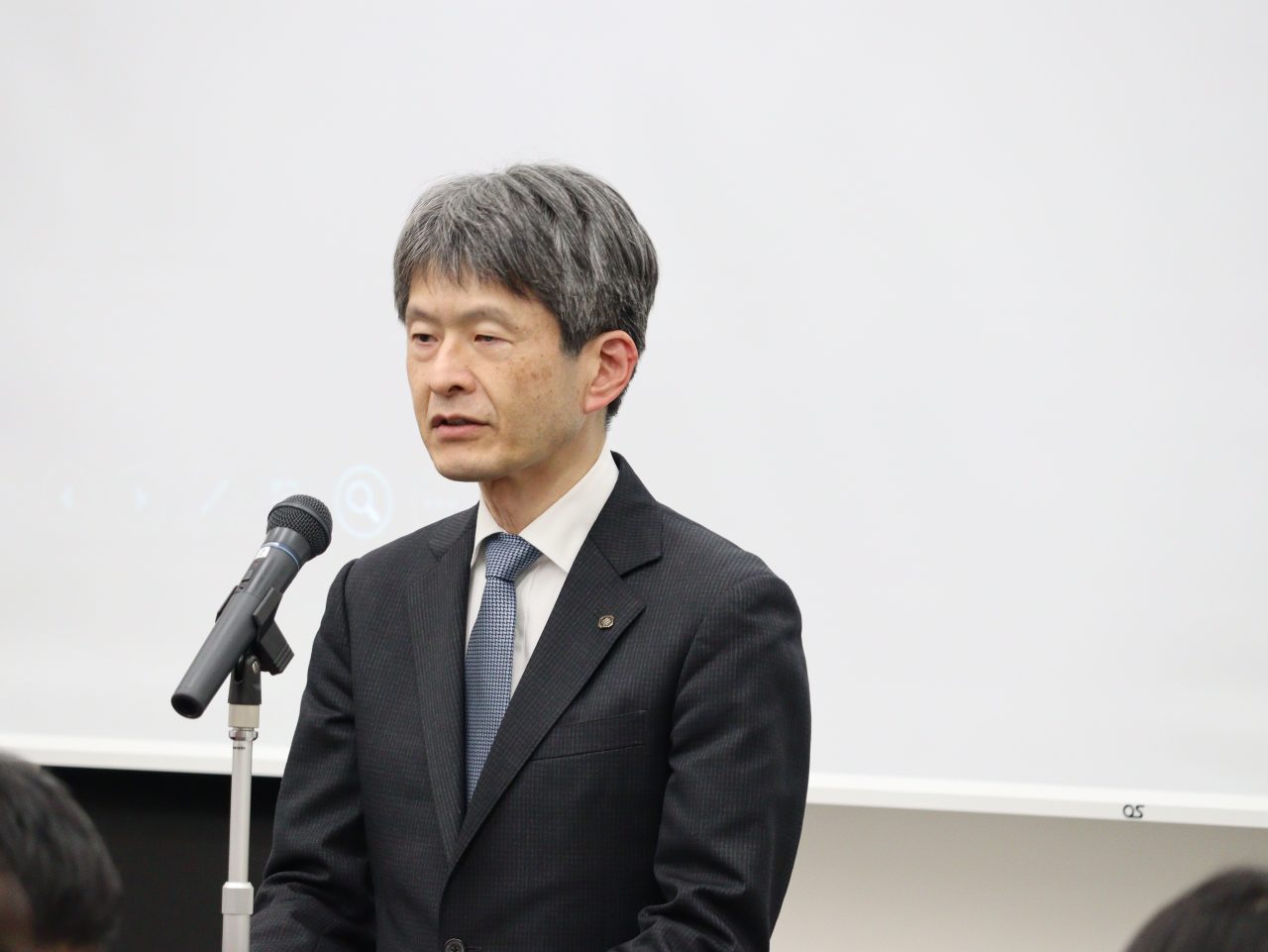 閉講式では、市川満理事が「出席率も90%越えであり、遠方からの皆勤の方もいらっしゃるとのことで、受講生のモチベーションの高さと努力に感服した。このご縁も大切に、山梨大学を仲間と思って今後も相談していただきたい」と、小林洋一山梨県産業政策部理事が「本講座で習得した知識や技能を存分に生かし、社内における中核的存在のみならず、本県の水素・燃料電池関連産業を牽引する役割を担っていただくことを期待している」とそれぞれ挨拶しました。