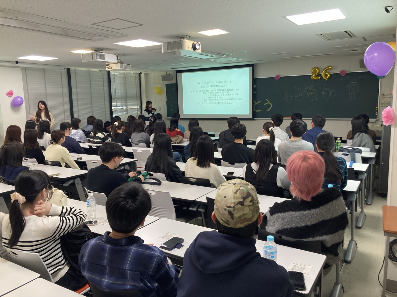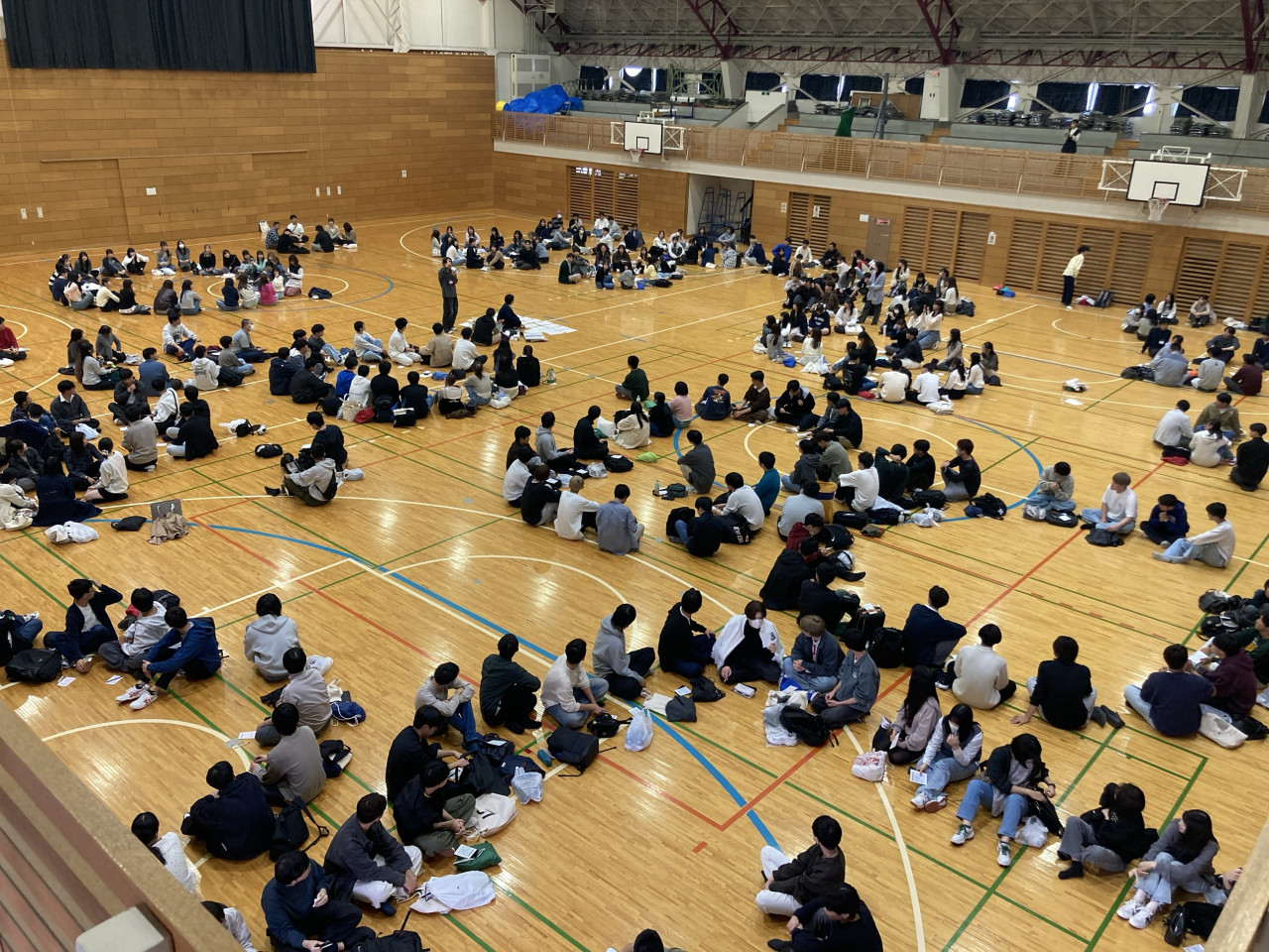 当日は、教育学部、生命環境学部、医学部、工学部の合格者がそれぞれ指定教室に集合し、在学生によるトークセッションやアイスブレイク、ゲームやキャンパスツアーを実施しました。第2部は体育館に移動し、学部・学科別の交流会やゲームを通じて合格者同士が親睦を深める時間となりました。運営には全学部学科等の在学生が参加し、履修登録の仕組みやサークル選びなど、入学直後に役立つ情報をリアルな経験を交えて伝えました。