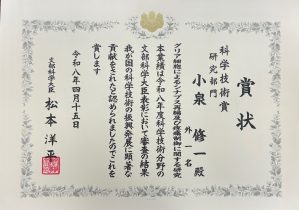 小泉修一医学域教授が文部科学大臣表彰科学技術賞(研究部門)を受賞