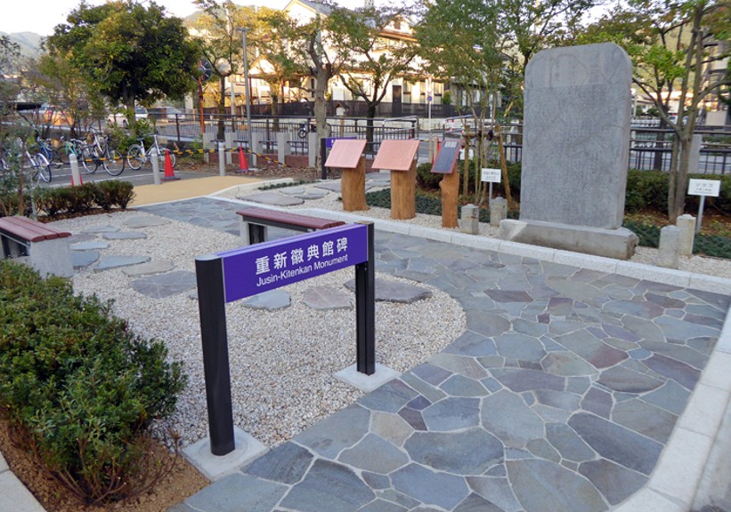 本学の淵源となる寛政8年(1796年)に創設された教育機関「徽典館」が、天保14年(1844年)に新築移転したことを記念して建立されたものである。