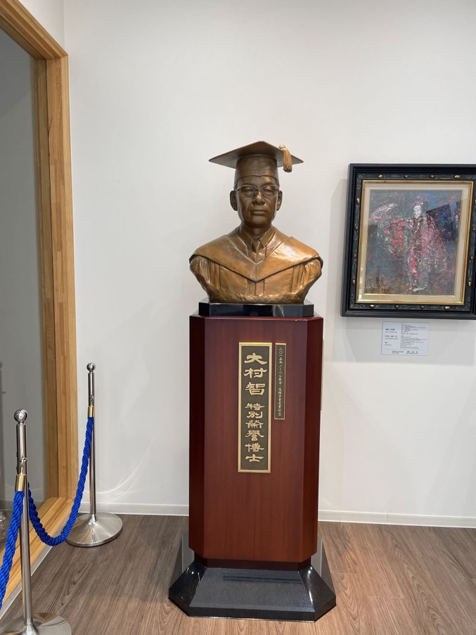 山梨大学の卒業生。2015年にノーベル医学・生理学賞を受賞。山梨大学特別栄誉博士の称号を授与された。(右)